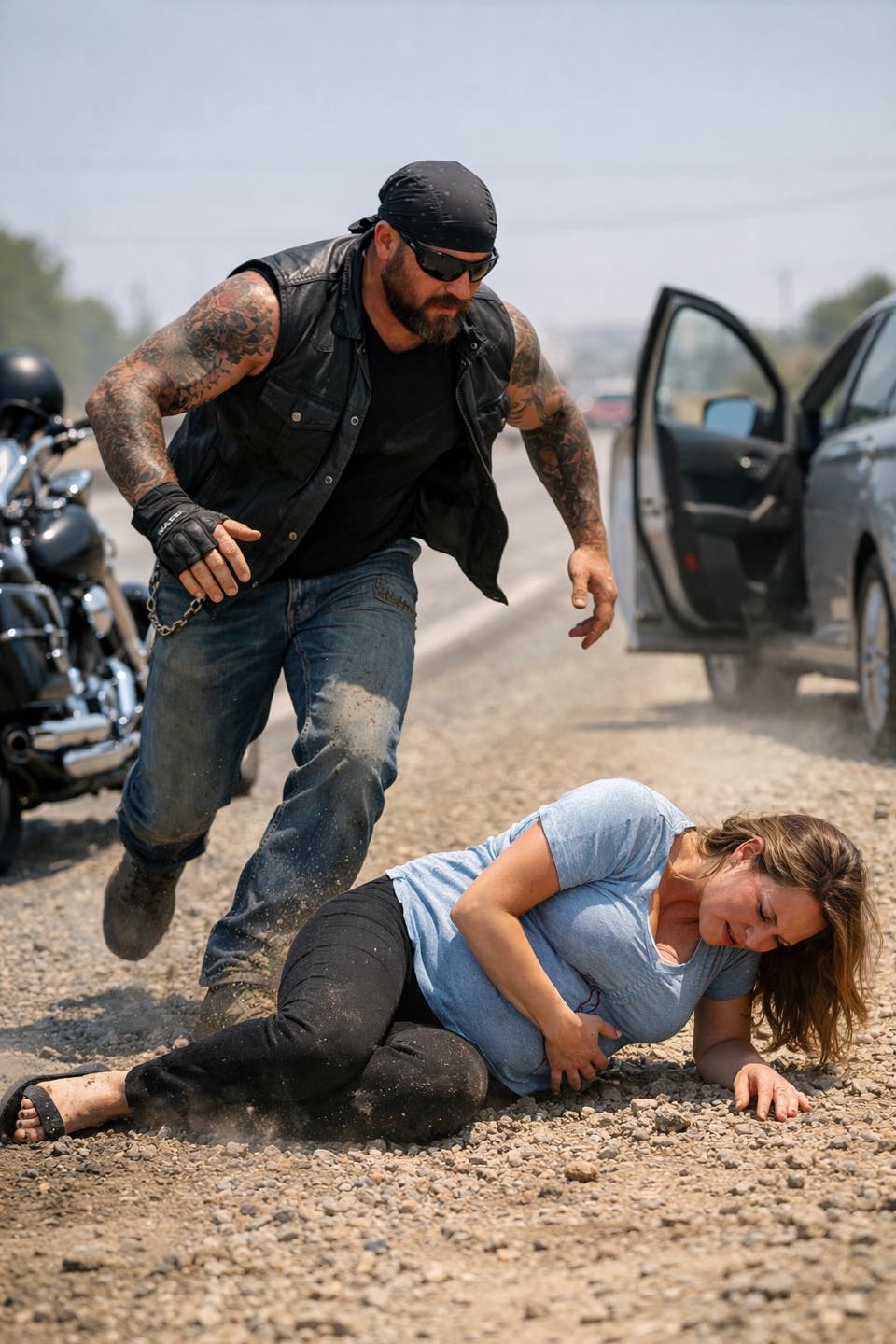 It sounds like the kind of headline people skim and assume is exaggerated: biker saves pregnant woman on the side of the highway. Too cinematic.