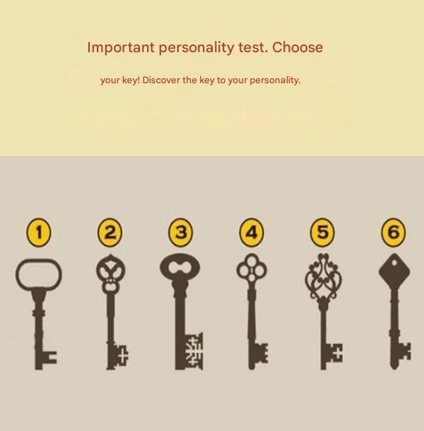 The Personality Test. Choose your key! Discover the key to your personality… Your subconscious mind opens the door to unknown worlds that only you can