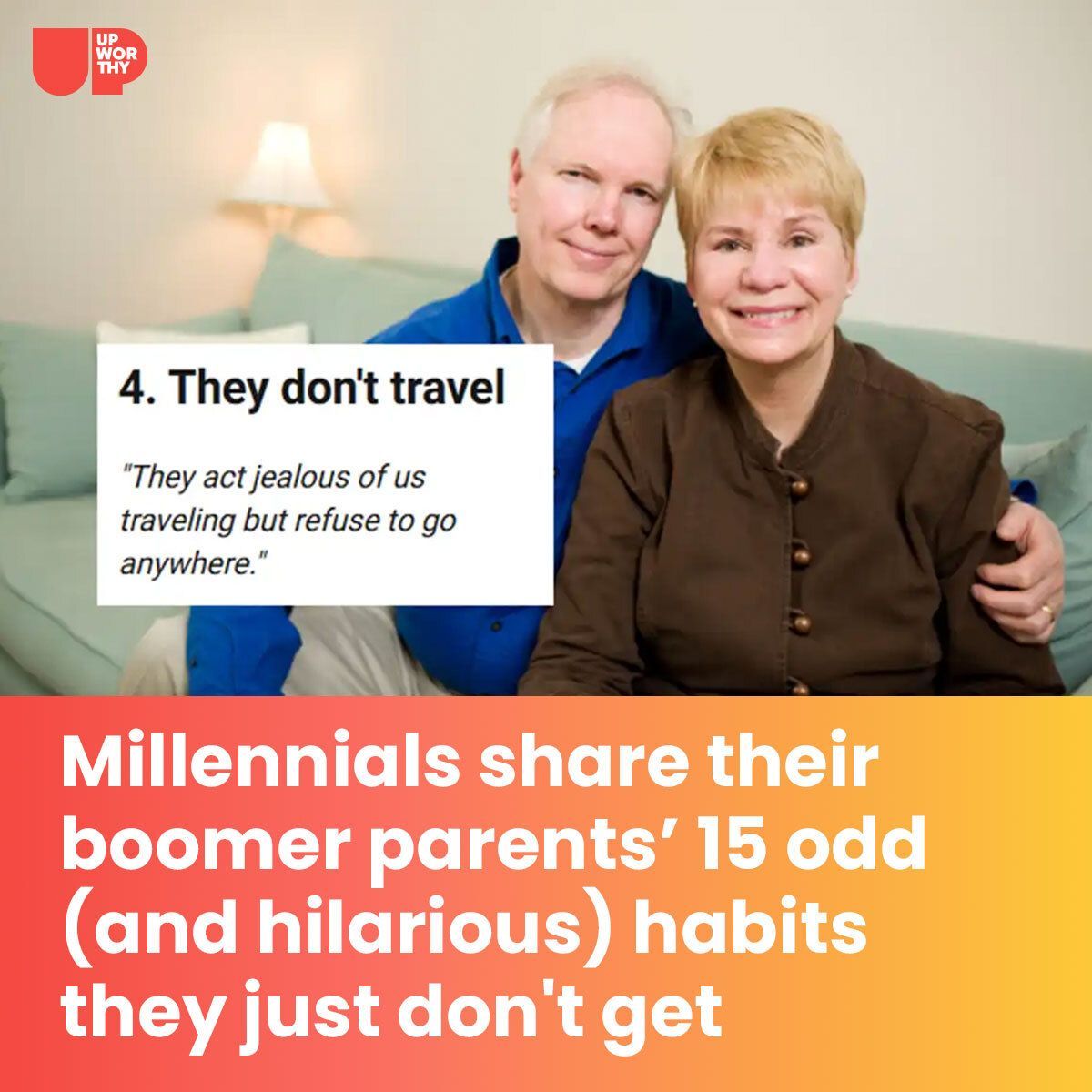 Of course, it is reductive to reduce generations into a series of stereotypes, whether it’s millennials or baby boomers. But, for many, hearing that they aren’t the only person who gets frustrated with their boomer parents can be pretty cathartic and make them feel less alone.
