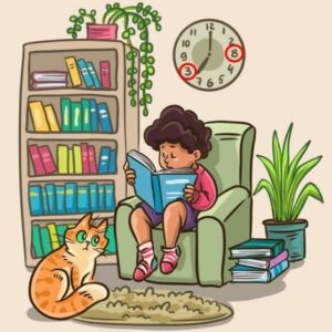 You see a boy sitting quietly, engrossed in a book, with an adorable cat comfortably snuggled up beside him. But… something seems off. Your task? Identify the mistake hidden in the picture!