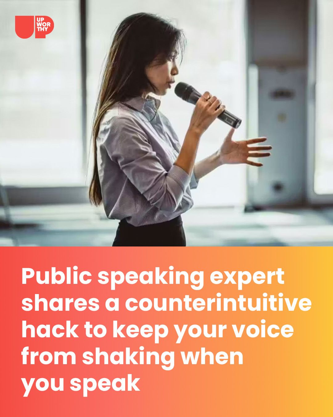 Instinctively, we may try techniques to calm our bodies, such as meditation or deep breathing. But there’s a counterintuitive hack that public speaking expert Vinh Giang shared with a woman who asked how to keep her voice from shaking when she gets too nervous.