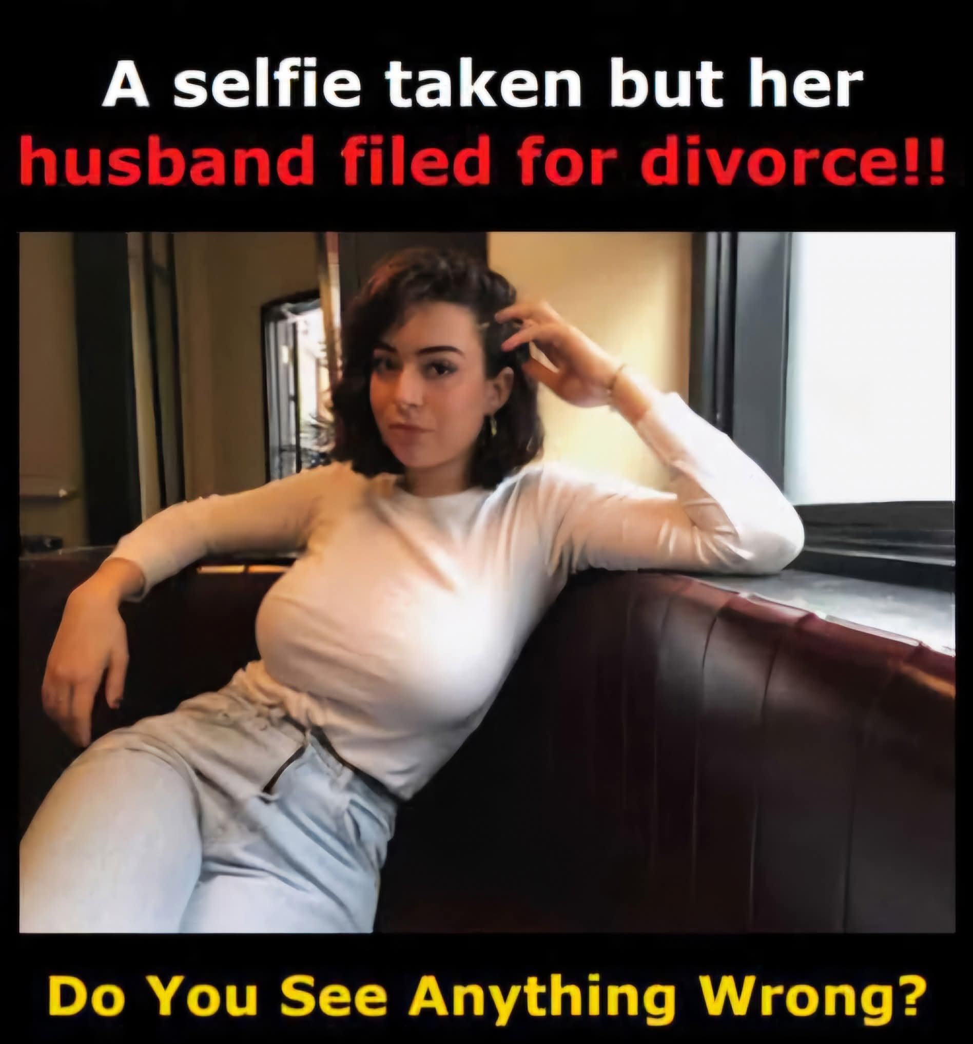 A lot of individuals who view this image won’t instantly think anything is off. The problem is that the woman sent her spouse the image right after getting married. Seated on her sofa, she directs a sharp glance at the camera; behind her, sunlight streams in through the window. However, even as beautiful as she looks, her husband immediately notices something is very wrong. Can you see it? Hint: The answer is in the details of the picture.