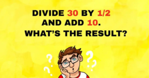 The answer is 70! Yes, you must be clamoring for the explanation: The riddle says divide 30 by half, not in half. When you divide by half, you actually end up multiplying by two. This means that 30 divided by half is 60. Add 10, and you’ve got 70!