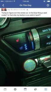 A reminder popped up yesterday, a funny one about the seat cooler in the rental car I was driving that day. I remember the post. I remember where I was. I remember the question, the warmth of the air and the exact place I was.