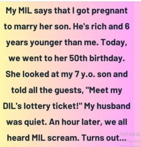 My mother-in-law has never hidden her dislike for me, accusing me of getting pregnant to “trap” her wealthy, younger son. I’ve swallowed her harsh words for years to avoid conflict, but at her 50th birthday party, her cruel remark about my son pushed my husband to take a stand that flipped her celebration into a dramatic family showdown.