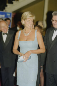 Princess Diana (1961 – 1997) at the Royal Albert Hall after an English National Ballet production of ‘Swan Lake’, London, 3rd June 1997. The Princess is wearing a dress by designer Jacques Azagury. (Photo by David M Benett/Getty Images)