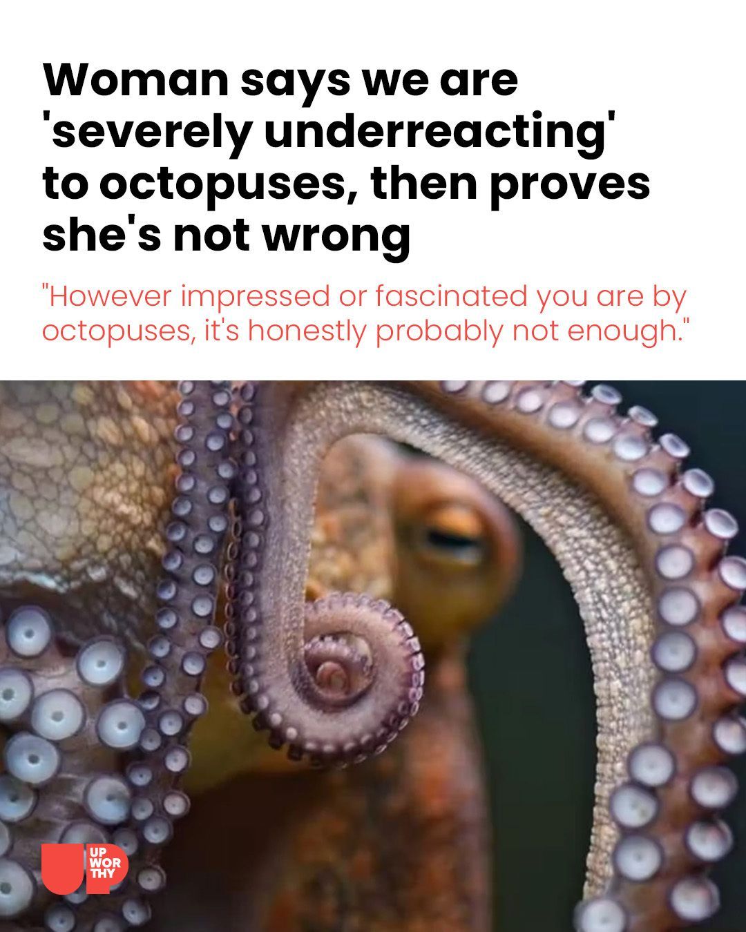 “However impressed or fascinated you are by octopuses, it’s honestly probably not enough,” she says. “We are severely underreacting to octopuses collectively.”